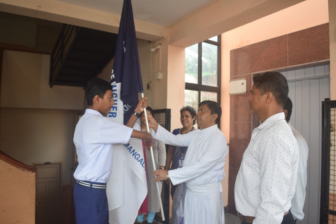 The Investiture Ceremony was held at St Aloysius College Higher Primary School, Kodialbail on 16th June 2022. The Correspondent of the School, Fr Gerald Furtado S J handed over the school flag to the SPL , Abhish acknowledging the budding young leader. The School Cabinet leaders marched forward along with the SPl, ASPl and the dignitaries.