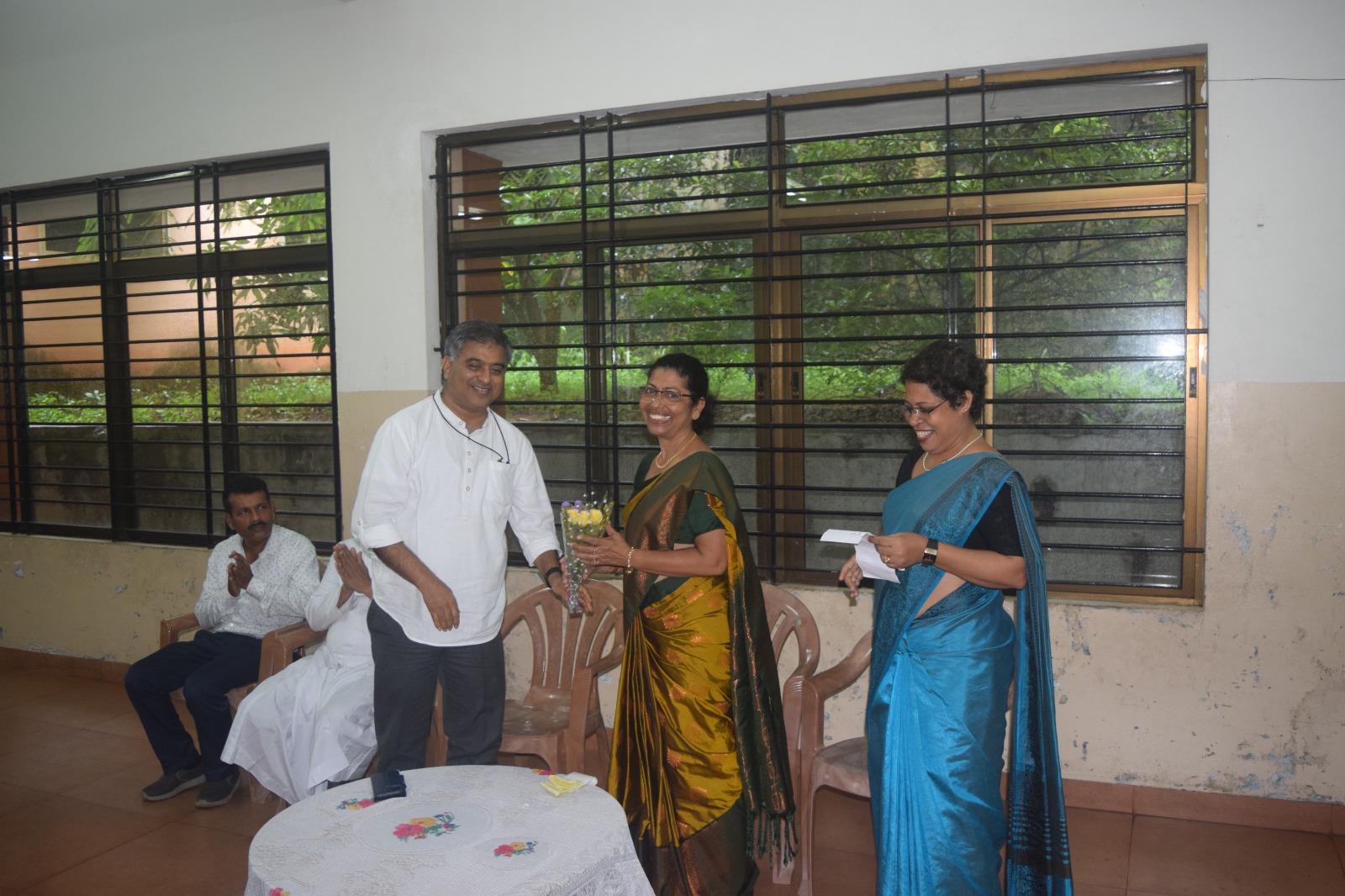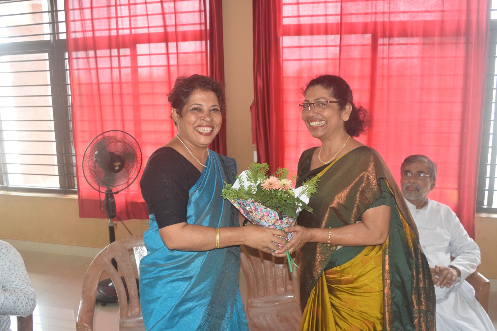 ಬೆಳಿಗ್ಗೆ 10.30 ಕ್ಕೆ ಶ್ರೀಮತಿ ಫಿಲೊಮಿನಾ ಲೂವಿಸ್ರವರನ್ನು ಶಾಲಾ ಸಂಚಾಲಕರು , ಮುಖ್ಯೋಪಾಧ್ಯಾಯಿನಿ , ಉಪಮುಖ್ಯೋಪಾಧ್ಯಾಯರು ವಾದ್ಯ ಘೋಷದ ಗೌರವದೊಂದಿಗೆ ಸಭಾಂಗಣಕ್ಕೆ ಕರೆತಂದರು.