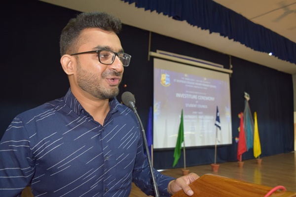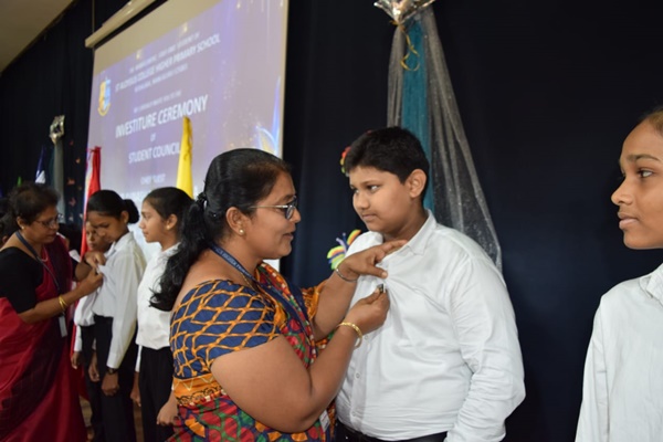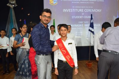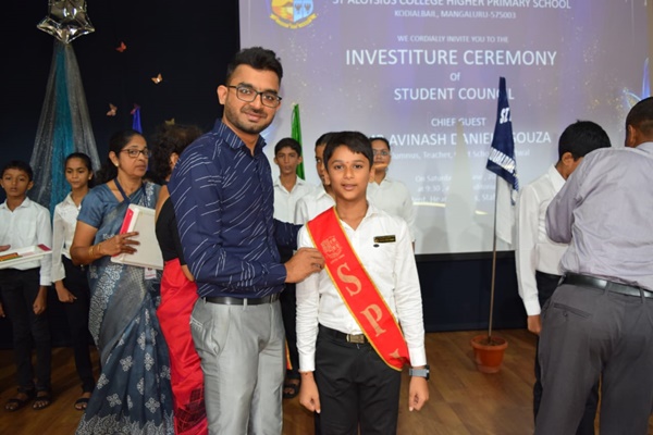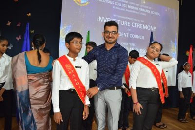 Avinash, an alumnus of the school, nostalgically recalled his school days and expressed his pride in returning as a chief guest. He thanked the teachers for their unwavering support and guidance, attributing his success to the opportunities provided at St Aloysius Primary School. He encouraged the new cabinet members to adhere to five key principles- goal-oriented, respect and responsibility, encouragement, approachable and teamwork.