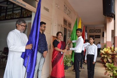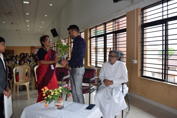 The correspondent, Fr John D’Souza SJ welcomed the chief guest, Avinash Daniel Dsouza with a sapling as a gesture of respect and appreciation.