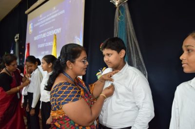The correspondent, headmistress, chief guest, and in-charge teachers then honoured the leaders with badges and sashes. In his address, the correspondent emphasised that “Great leaders are not born; they are made.” He reminded the students that they were elected because their peers recognised their leadership qualities. He encouraged them to dream big and work towards fulfilling those dreams without compromise.