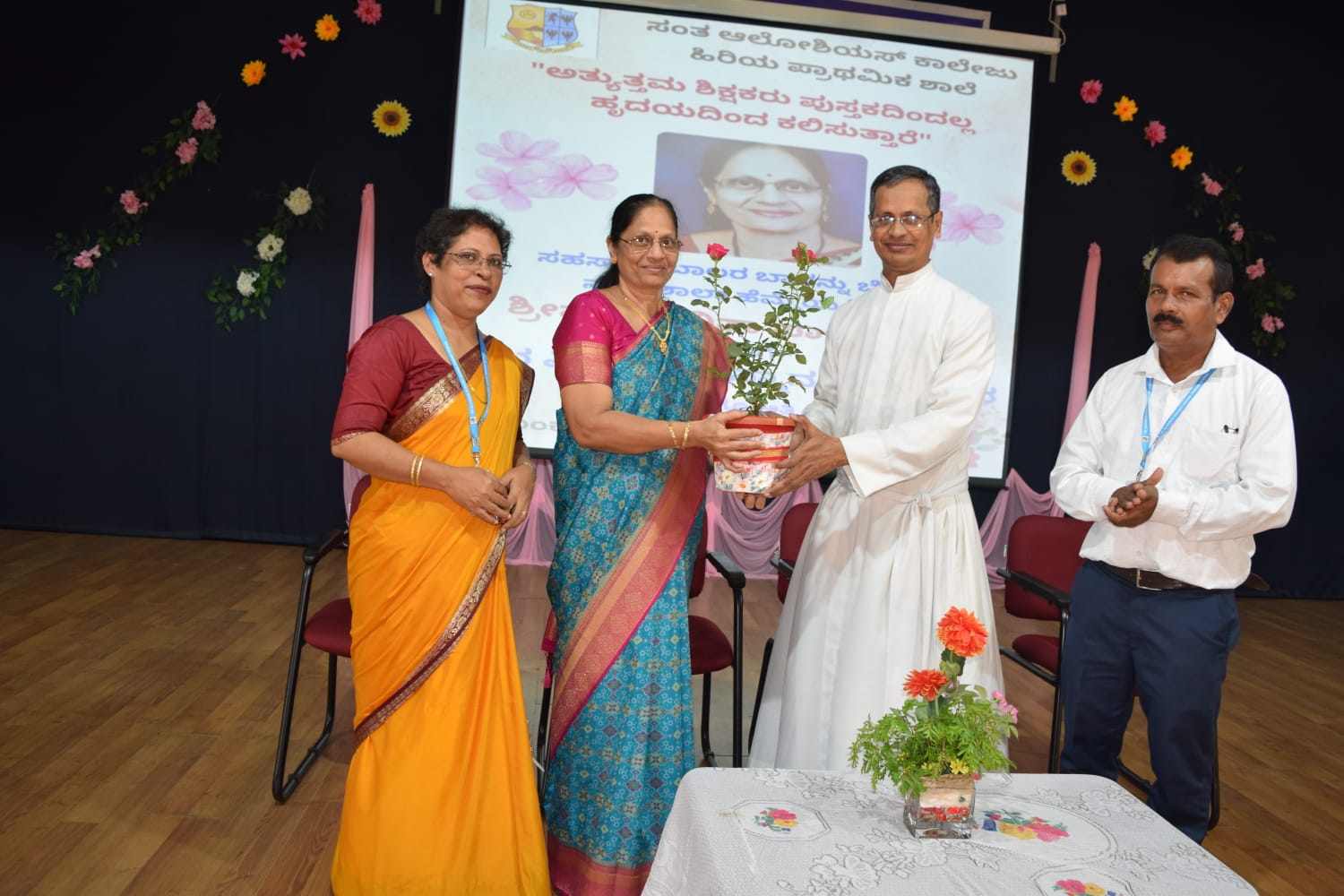 ದಿನಾಂಕ ೩೦-೯-೨೦೨೪ ರಂದು ಬೆಳಿಗ್ಗೆ ೧೦ ಗಂಟೆಗೆ ಶಿಕ್ಷಕಿಯಾದ ಶ್ರೀಮತಿ ಅನಿತಾ ಪಾಯಿಸ್ ರವರಿಗೆ ಶುಭ ವಿದಾಯ ಸನ್ಮಾನ ಸಮಾರಂಭವು ಸಂತ ಅಲೋಶಿಯಸ್ ಕಾಲೇಜು ಹಿರಿಯ ಪ್ರಾಥಮಿಕ ಶಾಲೆಯ ಸಭಾಂಗಣದಲ್ಲಿ ನಡೆಯಿತು. ಈ ಕಾರ್ಯಕ್ರಮದಲ್ಲಿ ಸಂಚಾಲಕರಾದ ವಂ ಜೋನ್ಸನ್ ಪಿಂಟೊ ಎಸ್.ಜೆ ಮುಖ್ಯೋಪಾಧ್ಯಾಯಿನಿ ಶ್ರೀಮತಿ ಜೊಸಿಟಾ ನೊರೊನ್ನಾ ಶಿಕ್ಷಕ ರಕ್ಷಕ ಸಂಘದ ಉಪಾಧ್ಯಕ್ಷರಾದ ವಿಕ್ಟರ್ ಸೆರಾವೊ ಉಪಸ್ಥಿತರಿದ್ದರು. ಪ್ರಾರ್ಥನೆಯೊಂದಿಗೆ ಕಾರ್ಯಕ್ರಮ ಪ್ರಾರಂಭವಾಯಿತು. ೭ ನೇ ತರಗತಿಯ ಲೈನಲ್ ಶಾನ್ ನೆರೆದ ಎಲ್ಲಾ ಗಣ್ಯರನ್ನು ಸ್ವಾಗತಿಸಿದನು. ೧ ನೇ ತರಗತಿಯ ಇವಾನ್ ಮಸ್ಕರೇನಸ್ ಮತ್ತು ೭ ನೇ ತರಗತಿಯ ಗ್ಯಾವಿನ್ ¥s಼ೆರ್ನಾಂಡಿಸ್ ತಮ್ಮ ಶಿಕ್ಷಕಿಯ ಬಗ್ಗೆ ಕೃತಜ್ಞತೆಯ ಮಾತುಗಳನ್ನು ಆಡಿದರು. ಉಪಮುಖ್ಯೋಪಾಧ್ಯಾಯರಾದ ಲೀಯ ಡಿಸೋಜರವರು ಶುಭ ವಿದಾಯ ಸನ್ಮಾನ ಪತ್ರವನ್ನು ವಾಚಿಸಿದರು. ಶ್ರೀಮತಿ ಅನಿತಾ ಪಾಯಿಸ್ ಅವರ ಅತ್ಯುತ್ತಮ ಸೇವೆಗಾಗಿ ಶಾಲು ಹೊದಿಸಿ ಹಣ್ಣುಹಂಪಲು ನೀಡಿ ಸನ್ಮಾನ ಪತ್ರ ಕೊಟ್ಟು ಗೌರವಿಸಿದರು. ಮಕ್ಕಳು ಪ್ರೀತಿಯಿಂದ ಹೂಗಳನ್ನು ಕೊಟ್ಟು ತಮ್ಮ ಪ್ರೀತಿಯ ಶಿಕ್ಷಕಿಗೆ ವಿದಾಯ ಹೇಳಿದರು. ನಿವೃತ್ತಿ ಶಿಕ್ಷಕಿ ಶ್ರೀಮತಿ ಅನಿತಾ ಪಾಯಿಸ್ ಮಾತನಾಡಿ ೪೦ ವರುಷದ ಈ ಅನುಭವವು ನನಗೆ ಈ ಸಂಸ್ಥೆಯಲ್ಲಿ ಸಂತೋಷವನ್ನು ನೀಡಿದೆ. ಹಾಗೆಯೇ ಮಕ್ಕಳಿಗೆ ನಿಮ್ಮ ವಿದ್ಯಾಭ್ಯಾಸದ ಪಯಣದಲ್ಲಿ ನಿಮ್ಮ ವಿದ್ಯಾಭ್ಯಾಸವು ನಿರಂತರವಾಗಿರಲಿ, ನೀವು ವಿದ್ಯಾಭ್ಯಾಸ ಮಾಡುತ್ತಿದಂತೆ ಮೌಲ್ಯಗಳನ್ನು ಅಳವಡಿಸಿ ,ಹೆತ್ತವರಿಗೆ ಗೌರವ ಕೊಟ್ಟು ನಿಮ್ಮ ಮನೆಗೂ ಮತ್ತು ಸಮಾಜಕ್ಕೂ ಒಳ್ಳೆಯದು ಮಾಡಿ ಎಂದು ಹೇಳಿದರು. ಸಂಚಾಲಕರಾದ ವಂದನೀಯ ಜೊನ್ಸನ್ ಪಿಂಟೊ ಎಸ್.ಜೆ ಮಾತನಾಡಿ ಶ್ರೀಮತಿ ಅನಿತಾ ಪಾಯಿಸ್ ಅವರ ನಾಲ್ಕು ದಶಕಗಳ ಸಮರ್ಪಿತ ಸೇವೆಗಾಗಿ ಧನ್ಯವಾದ ಅರ್ಪಿಸಿದರು. ಅತ್ಯುತ್ತಮ ಶಿಕ್ಷಕರು ಪುಸ್ತಕದಿಂದಲ್ಲ ಹೃದಯದಿಂದ ಕಲಿಸುತ್ತಾರೆ ಎಂದು ಹೇಳಿದರು. ಕಾರ್ಯಕ್ರಮವನ್ನು ೭ ನೇ ತರಗತಿಯ ರಿಯಾನ್ ಡಿಸಿಲ್ವ ಮತ್ತು ಆರನ್ ಡಿಸೋಜ ನಿರ್ವಹಿಸಿರು. ಸಾರಾ ಮತ್ತು ಜೋವಿಯಾ ಸಹಕರಿಸಿದ ಎಲ್ಲರಿಗೂ ವಂದನಾರ್ಪಣೆ ಮಾಡಿದರು. ಶಾಲಾ ಗೀತೆಯೊಂದಿಗೆ ಕಾರ್ಯಕ್ರಮವು ಮುಕ್ತಾಯವಾಯಿತು.