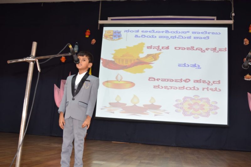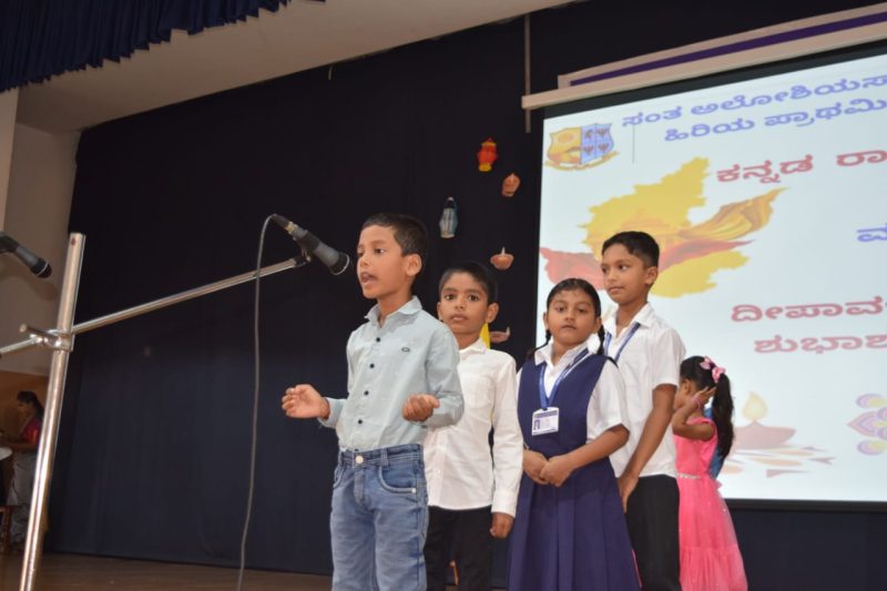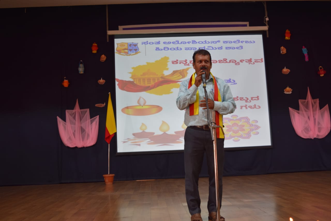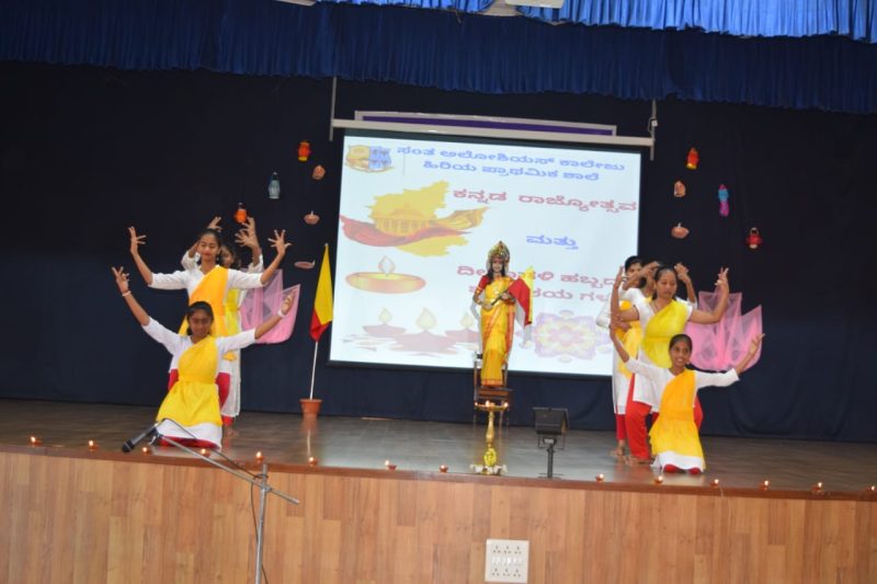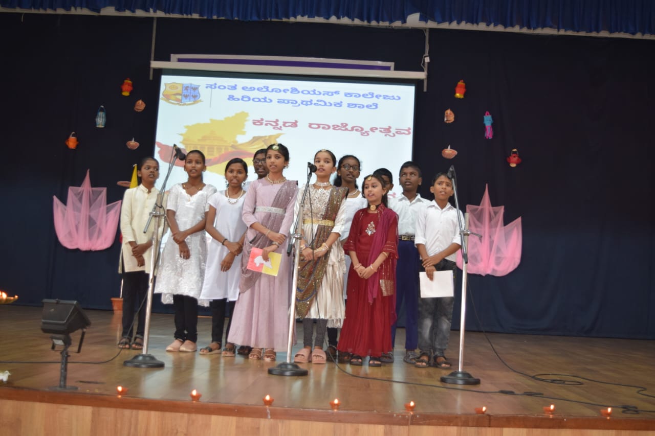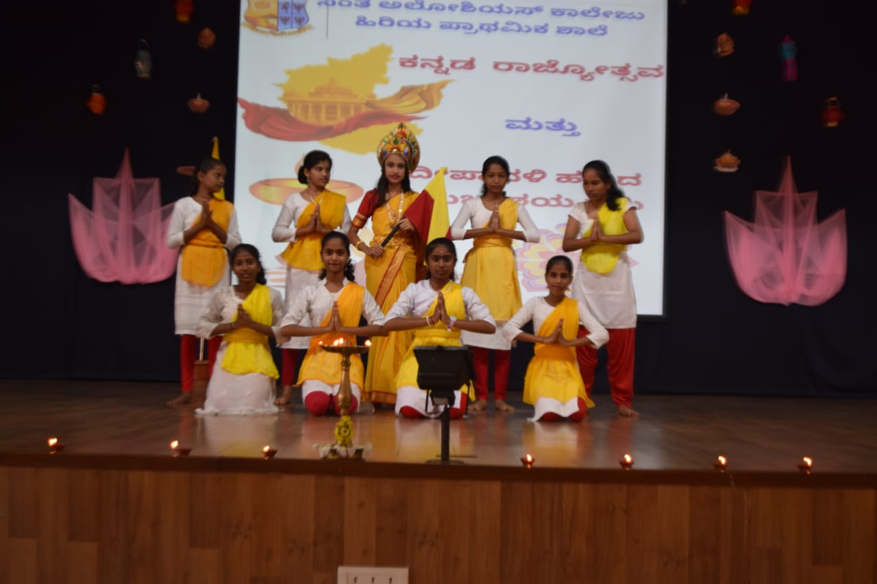 ಸಂತ ಅಲೋಶಿಯಸ್ ಕಾಲೇಜು ಹಿರಿಯ ಪ್ರಾಥಮಿಕ ಶಾಲೆಯಲ್ಲಿ ಕನ್ನಡ ರಾಜ್ಯೋತ್ಸವ ಮತ್ತು ದೀಪಾವಳಿ ಹಬ್ಬದ ಆಚರಣೆ ನಡೆಯಿತು. ಕಾರ್ಯಕ್ರಮವು ಕನ್ನಡ ನಾಡಗೀತೆಯಾದ ಜೈಭಾರತ ಜನನಿಯ ತನುಜಾತೆ ಗೀತೆಯೊಂದಿಗೆ ಪ್ರಾರಂಭವಾಯಿತು. ಮುಖ್ಯ ಅತಿಥಿಯಾಗಿ ಉತ್ತರ ಕೆನರಾ ಬಾರ್ ಕೌನ್ಸಿಲ್ನಲ್ಲಿ ಸೇವೆ ಸಲ್ಲಿಸುತ್ತಿರುವ ಗಣ್ಯ ವಕೀಲ ಮತ್ತು ಹಳೆವಿದ್ಯಾರ್ಥಿಯಾಗಿರುವ ಶ್ರೀ ರೂಪೇಶ್ ಕುಮಾರ್ ಆಗಮಿಸಿದ್ದರು. ಮುಖ್ಯೋಪಾಧ್ಯಾಯಿನಿ ಶ್ರೀಮತಿ ಜೊಸಿಟಾ ನೊರೊನ್ನಾ , ಉಪಮುಖ್ಯೋಪಾಧ್ಯಾಯರಾದ ಶ್ರೀ ಲೀಯಾ ಡಿಸೋಜ ಮತ್ತು ಶಿಕ್ಷಕ ರಕ್ಷಕ ಸಂಘದ ಕಾರ್ಯದರ್ಶಿಯಾದ ಶ್ರೀಮತಿ ರೂಪಶ್ರೀ ಉಪಸ್ಥಿತರಿದ್ದರು. ಕುಮಾರಿ ಆಲಿಯಾರವರು ಕನ್ನಡ ರಾಜ್ಯೋತ್ಸವದ ಮಹತ್ವವನ್ನು ತಿಳಿಸಿದರು. ಕನ್ನಡ ಗೀತೆ , ಕರ್ನಾಟಕ ಭಾಷೆ ಮತ್ತು ಸಂಸ್ಕçತಿಯ ಸಾರವನ್ನು ಕೊಂಡಾಡುವ ನೃತ್ಯದೊಂದಿಗೆ ಕಾರ್ಯಕ್ರಮಕ್ಕೆ ಮೆರುಗನ್ನು ನೀಡಿತು.