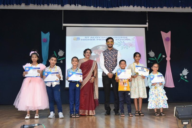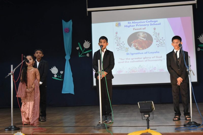 The significance of the day and the virtues of St Ignatius of Loyola were eloquently presented by Aiden John Fernandes, Jordan Calvert Feston, Alrick Levin Dsouza, and Afsana Mulla, who inspired the audience through their meaningful reflections.