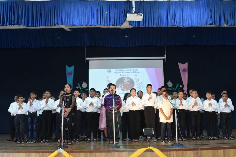 As part of the celebration, certificates were distributed to the winners of various competitions held in honour of the feast. The programme also featured a value-based skit, a melodious wishing song, and a vibrant group dance, which added colour and enthusiasm to the event. A special highlight was a live saxophone performance by Mr. Sweethin Hartman, which mesmerized the audience and inspired many students to take an interest in learning musical instruments.