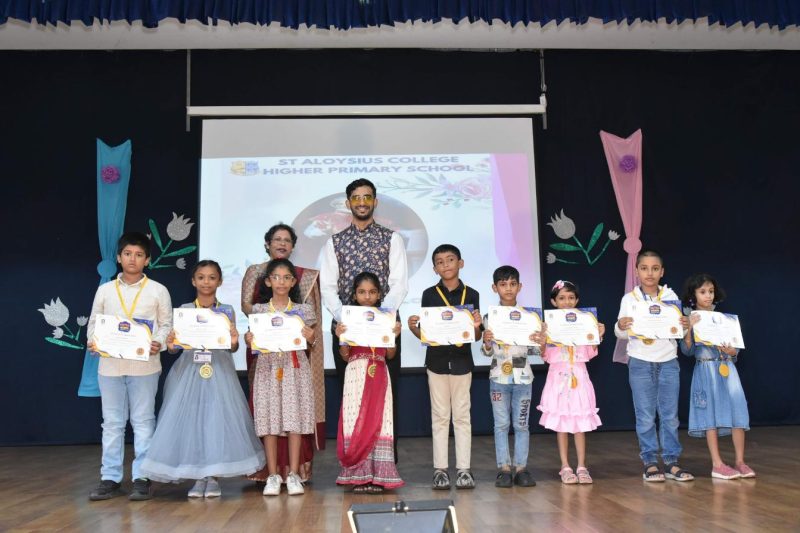 A vibrant cultural programme, organized by the students of Class 4, followed the Mass. The programme began with a soulful prayer song, after which Elroy Nethan Noronha, a student of Class 4, extended a warm welcome to the chief guest, Mr. Sweethin Hartman—an alumnus of the St Aloysius Institutions (School to PU), well-known musician, actor, and former Estimation and Design Engineer.