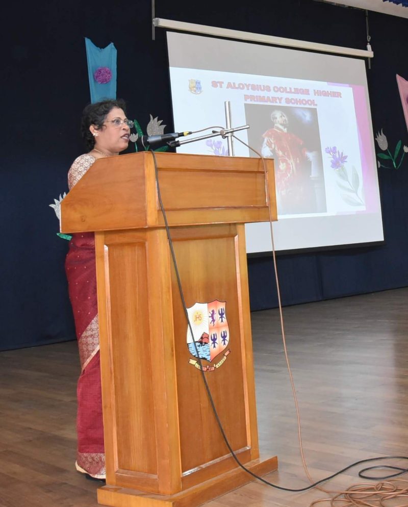 In his address, Mr. Sweethin Hartman fondly reminisced about his school days and expressed heartfelt gratitude to his parents and teachers for instilling in him the values that shaped his journey. He spoke about the enduring influence of St Ignatius during his formative years and encouraged students to emulate the saint’s virtues of compassion, humility, and service. He concluded his message with an inspiring quote: