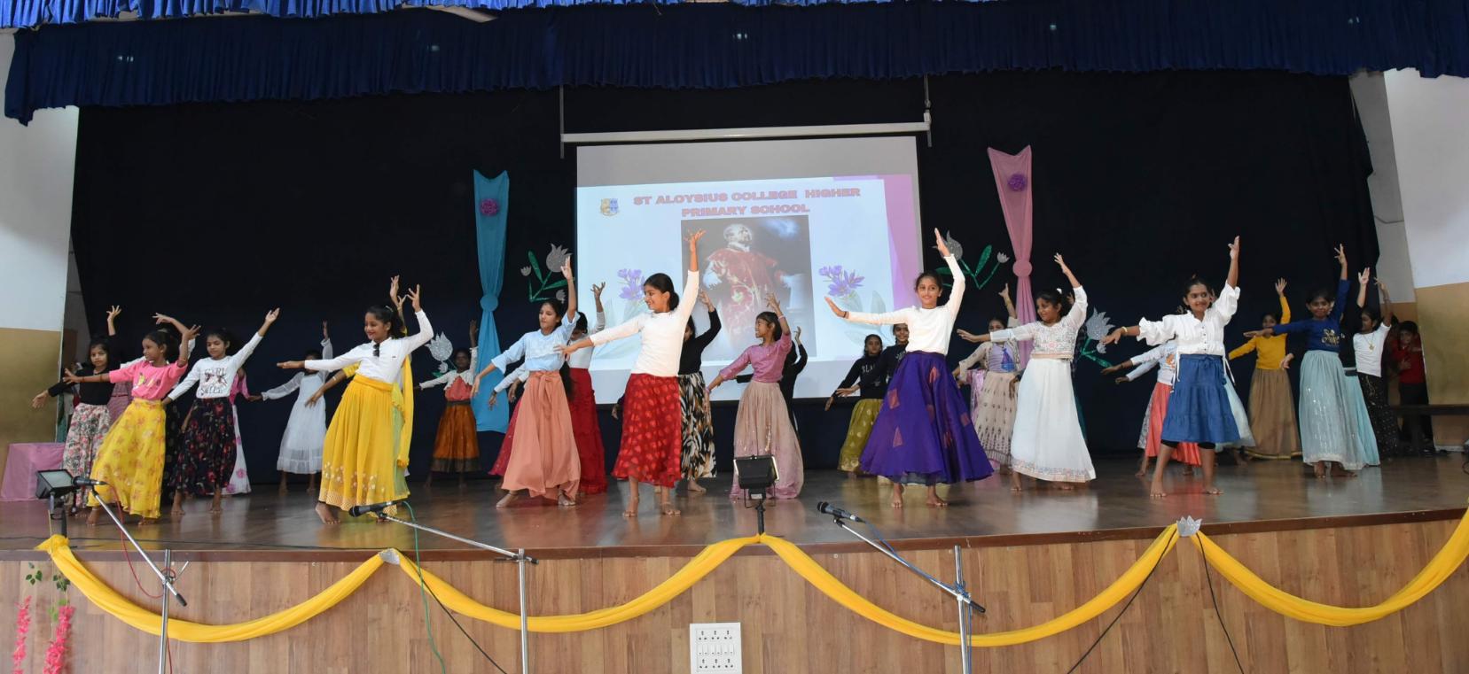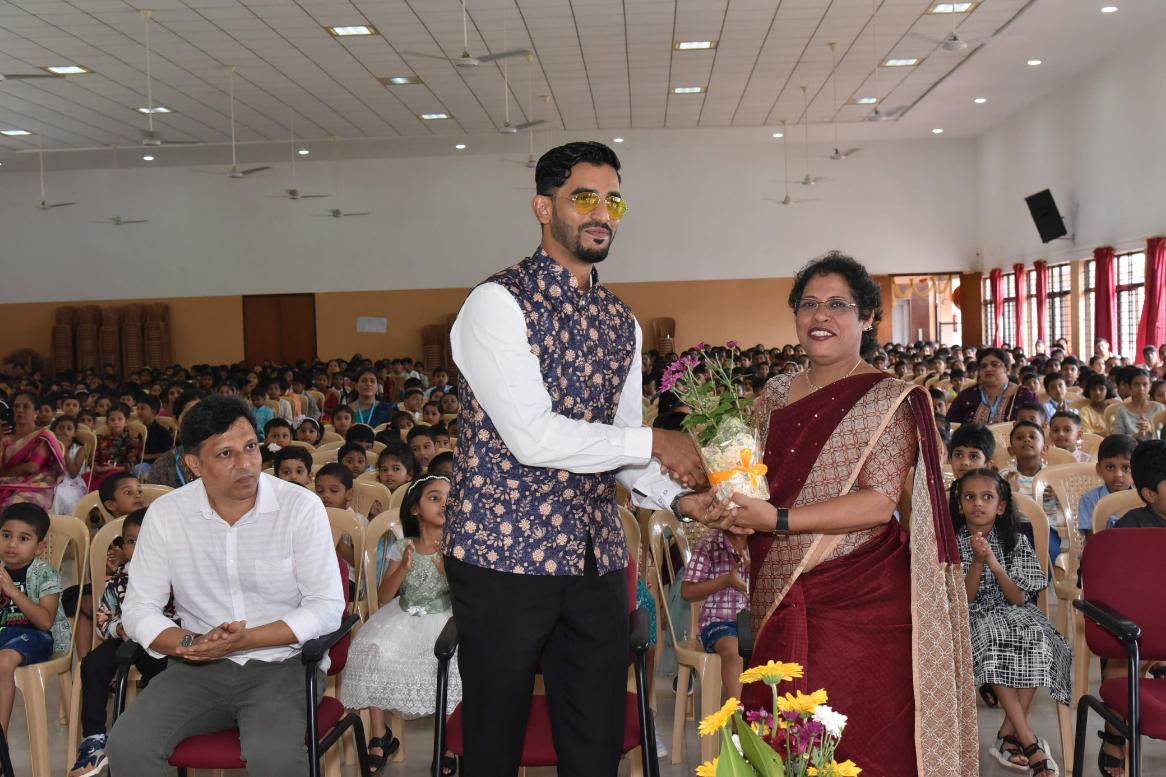 A vibrant cultural programme, organized by the students of Class 4, followed the Mass. The programme began with a soulful prayer song, after which Elroy Nethan Noronha, a student of Class 4, extended a warm welcome to the chief guest, Mr. Sweethin Hartman—an alumnus of the St Aloysius Institutions (School to PU), well-known musician, actor, and former Estimation and Design Engineer.