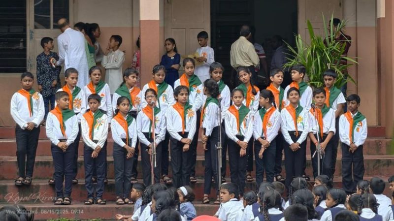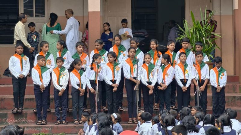 The school choir then rendered a melodious patriotic song, filling the atmosphere with national pride. This was followed by speeches from Jenelia Vaz and Prajwal, who spoke on the significance of the day and the sacrifices made by the forefathers of our Nation.