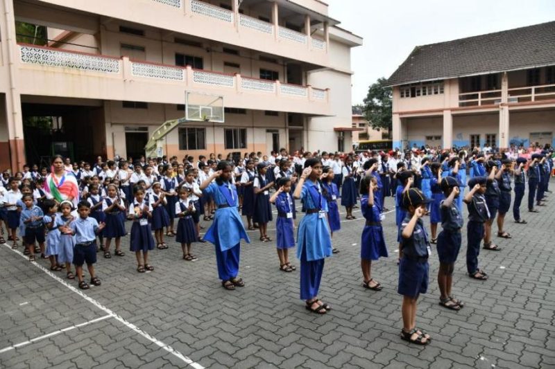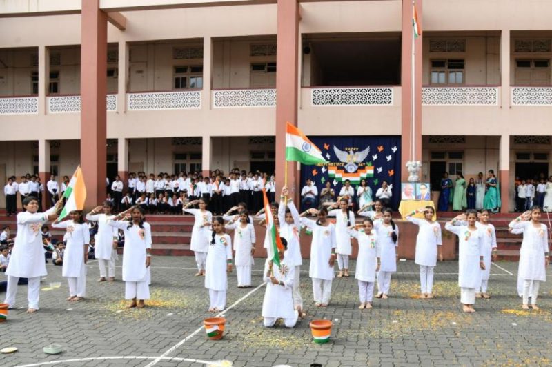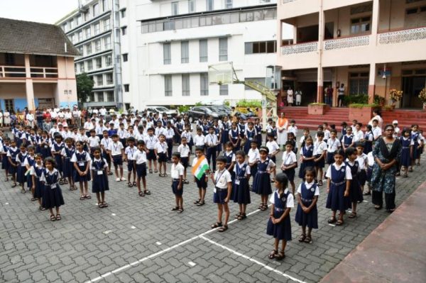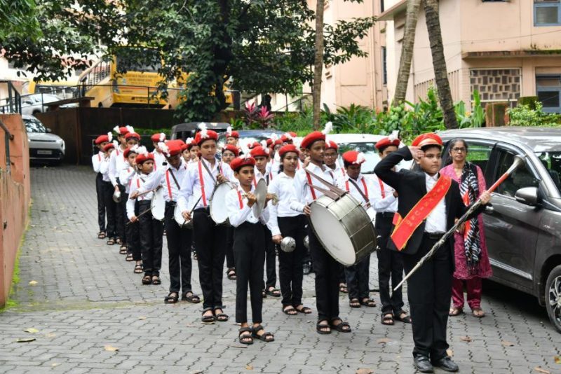 The Headmistress, Ms. Jositta Noronha, escorted the dignitaries to the flagpole, where the chief guest, Mr. Varun Rao Aroor (Alumnus, Sales Director – A.R.M Kia, Director – United Toyota), had the honour of hoisting the National Flag along with his wife, Dr. Kalpa Kushalappa, Orthopedic Surgeon at Tejaswini Hospital, Mangaluru.