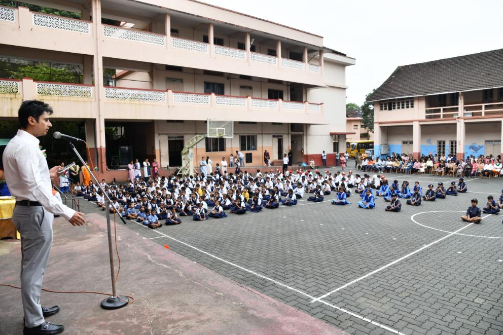 The programme was conducted by the students of Class 6. Reon Mascarenhas extended a warm welcome to the gathering. As a mark of appreciation, the Headmistress presented a sapling, symbolizing growth and respect. The PTA Vice President – Mr Mohammad Iqbal, Assistant Headmaster -Mr Liya D Souza, SPL- Master Laxminarayan and ASPL- Master Ison Mathias were also among the dignitaries on dais