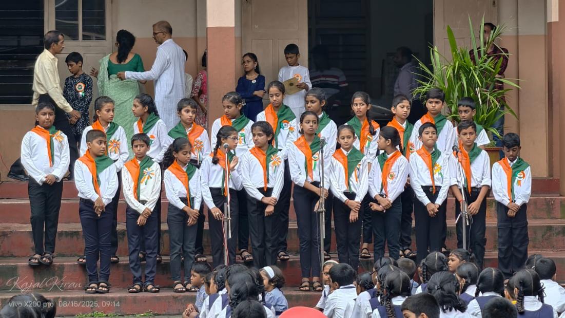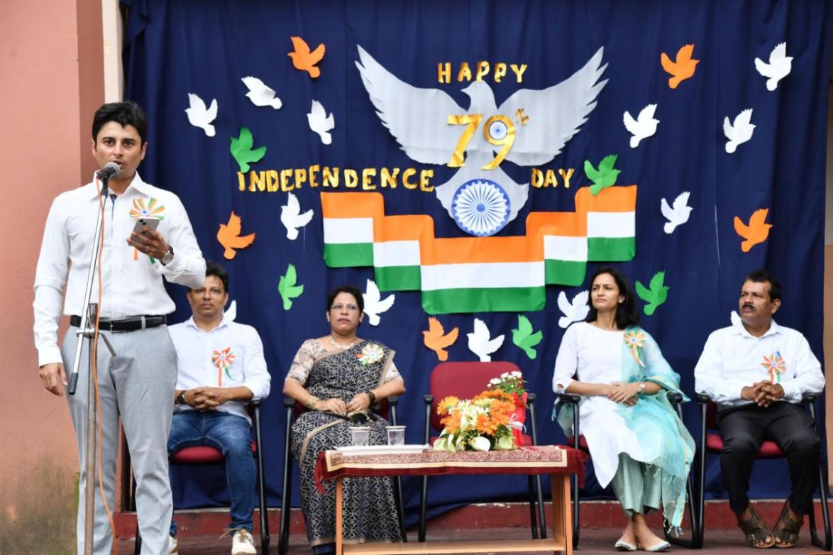 The school choir then rendered a melodious patriotic song, filling the atmosphere with national pride. This was followed by speeches from Jenelia Vaz and Prajwal, who spoke on the significance of the day and the sacrifices made by the forefathers of our Nation.