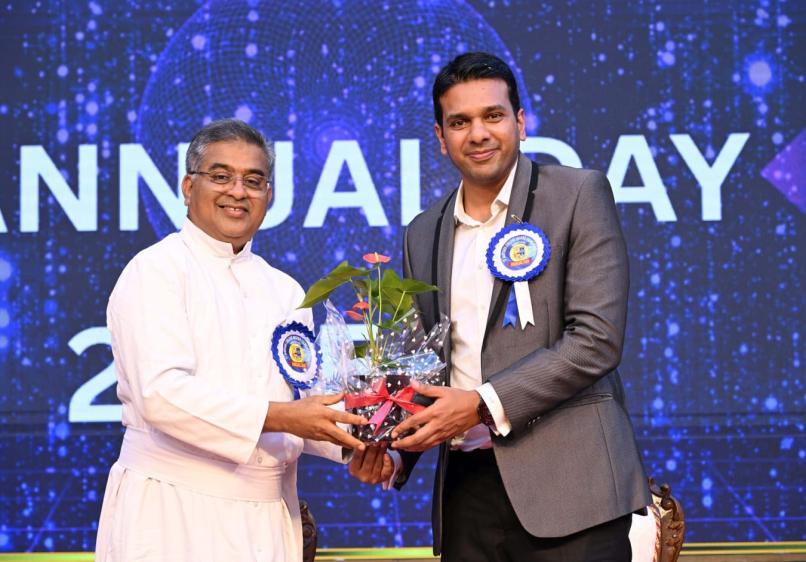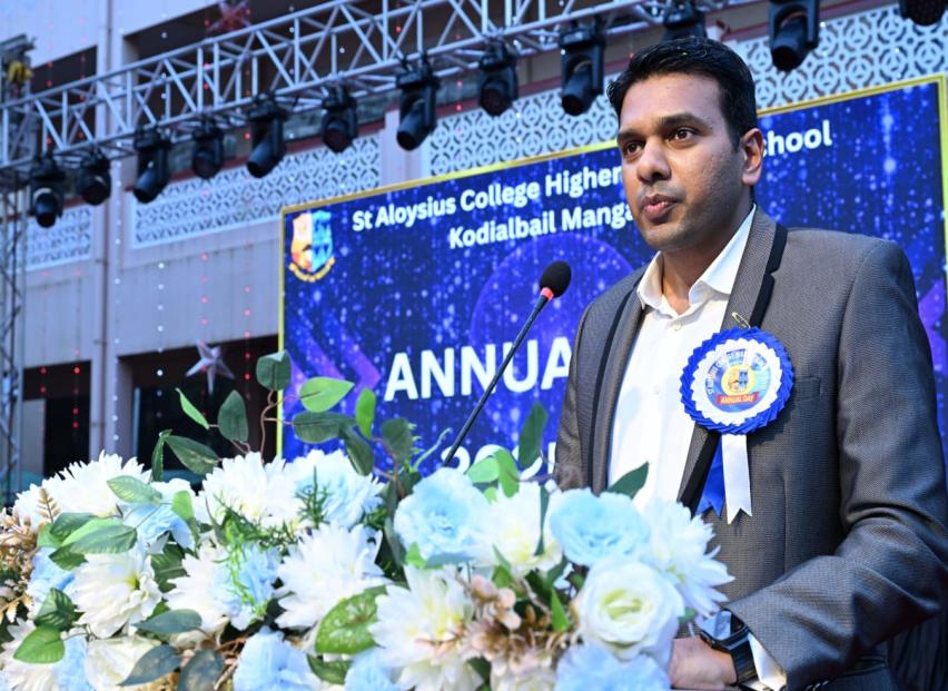 In his inspiring address, the Chief Guest, Mr. Abhinav Bhansal, fondly reminisced about his student days at St Aloysius, describing them as pivotal in shaping his life. He emphasized that success is not achieved overnight and that there are no shortcuts to achievement. He highlighted the importance of discipline, perseverance and consistent effort. Encouraging students to pursue any field—be it science, commerce, arts, sports, or business—with focus and responsibility, he urged them to respect their teachers and parents, manage time wisely, and continue learning beyond textbooks. Concluding his speech, he expressed pride in being an alumnus of the institution and conveyed his best wishes to the students.