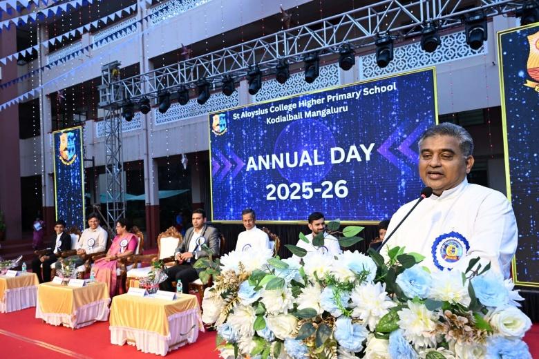 St Aloysius College Higher Primary School celebrated its much-anticipated Annual Day on 17th December 2025 with great enthusiasm, colour and grandeur. The celebration began with a vibrant procession as the dignitaries were escorted to the stage by the school band setting a festive tone for the evening. The warm and cheerful welcome extended by the students through a traditional aarthi added charm and liveliness to the occasion.