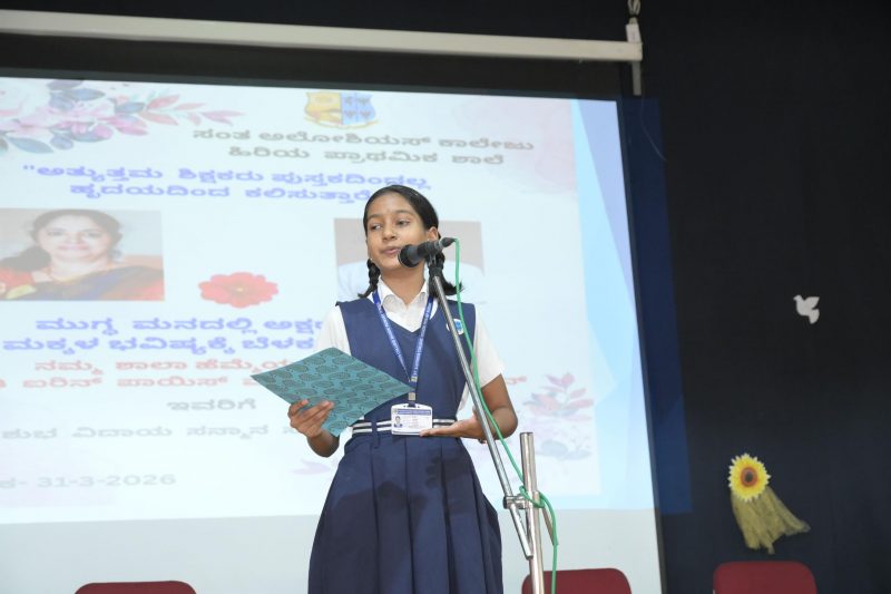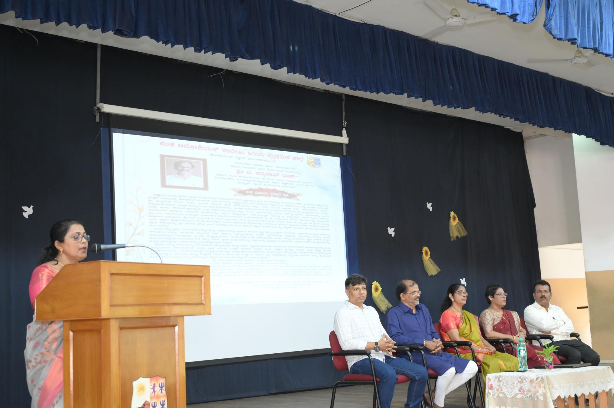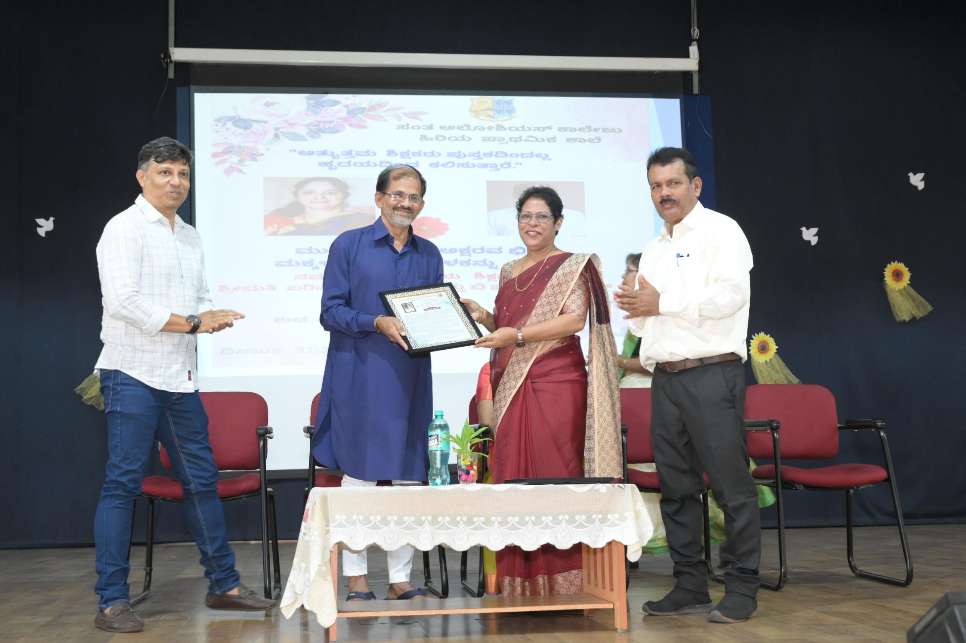 ಸಂತ ಅಲೋಸಿಯಸ್ ಕಾಲೇಜು ಹಿರಿಯ ಪ್ರಾಥಮಿಕ ಯಲ್ಲಿ 39 ವರ್ಷ ಗಳಿಂದ ಶಿಕ್ಷಕರಾಗಿ ಕಾರ್ಯ ನಿರ್ವಹಿಸಿ ನಿವೃತ್ತಿ ಹೊಂದಿದ ಶ್ರೀಮತಿ ಐರಿನ್ ಪಾಯಿಸ್ ಮತ್ತು ಶ್ರೀಯುತ ಬಿ ಪದ್ಮನಾಭ ರಾವ್ ಇವರಿಗೆ ಶಾಲಾ ಸಭಾಂಗಣದಲ್ಲಿ ಶುಭಾವಿದಾಯ ಸನ್ಮಾನ ಸಮಾರಂಭ ಜರಗಿತು.ಅಧ್ಯಕ್ಷ ಸ್ಥಾನ ದಿಂದ ಮಾತನಾಡಿದ ಶಾಲಾ ಸಂಚಾಲಕರಾದ ಫಾ ಜೋನ್ಸನ್ ಪಿಂಟೋ ಎಸ್ ಜೆ ರವರು “ಶಿಕ್ಷಕರು ತಮ್ಮ ಜೀವನದ 39 ವರ್ಷ ಗಳನ್ನು ನಮ್ಮ ಶಾಲೆಯ ವಿದ್ಯಾರ್ಥಿ ಗಳ ಉನ್ನತಿಗೆ ಮೂಡುಪಾಗಿರಿಸಿದರೆ, ಅವರ ನಿವೃತ್ತಿ ಜೀವನವು ಸುಖಮಯವಾಗಿರಲಿ ಎಂದು ಹಾರೈಸಿದರು.ಶ್ರೀಮತಿ ಐರಿನ್ ಪಾಯೆಸ್ ಮತ್ತು ಶ್ರೀಯುತ ಬಿ ಪದ್ಮನಾಭ ರಾವ್ ರವರು ಮಕ್ಕಳನ್ನು ಉದ್ದೇಶಿಸಿ ” ನೀವು ಕಲಿತ ಶಾಲೆ,ಶಿಕ್ಷಕರು ಹಾಗೂ ಮೌಲ್ಯಗಳನ್ನು ಎಂದಿಗೂ ನೆನಪಿಡಿ,ನಮ್ಮ ಹಿರಿಯರು, ತಂದೆ ತಾಯಿ ಪ್ರೀತಿಯಿಂದ ನೋಡಿಕೊಳ್ಳಿ, ಕಲಿತು ದೊಡ್ಡವರಾಗಿ ನಿಮ್ಮಿಂದಗುವ ಸಹಾಯವನು ಈ ವಿದ್ಯಾಸಂಸ್ಥೆಗೆ ನೀಡಿ ಎಂದು ಕಿವಿ ಮಾತು ಹೇಳಿದರು.ತುಂಬಿದ ಸಭೆ ಯಲ್ಲಿ ನಿವೃತ್ತಿ ಹೊಂದುವ ಶಿಕ್ಷರಿಗೆ ಗೌರವಾನ್ವಿತವಾಗಿ ಸನ್ಮಾನ ಸಮಾರಂಭಾ ನೆರವೇರಿಸಲಾಯಿತು.ಶಿಕ್ಷಕರದ ಶ್ರೀಮತಿ ದೀಪ್ಶಿಕ ಮತ್ತು ವೊಯ್ಲೆಟ್ ಲೋಬೊ ಶುಭ ವಿದಾಯ ಸನ್ಮಾನ ಪ್ರಮಾಣ ಪತ್ರವನ್ನು ಮಂಡಿಸಿದರು. ಸಿಯಾನಾ ಡಿಸೋಜಾ ನೆರೆದ ಎಲ್ಲರನ್ನು ಸ್ವಾಗತಿಸಿದರು. ಸ್ನೇಹ ಮತ್ತು ಜೊಯೆನ್ ಸ್ಯಾಮ್ ಶಿಕ್ಷಕರ ಭಗ್ಗೆ ತಮ್ಮ ಪ್ರೀತಿ ಯನ್ನು ವ್ಯಕ್ತ ಪಡಿಸಿದರು. ನಿಖಿಲ್, ಫಾರ್ಸಿನ, ಲಕ್ಮಿನಾರಾಯಣ್ ಎಮ್ ಜೆ, ಸಿಯಾನ್ ಲೊಫೇಸ್ ರವರು ಕಾರ್ಯಕ್ರಮವನ್ನು ನಿರೂಪಿಸಿದರು.ಶಾಲಾ ಮುಕ್ಯೋಪಾಧ್ಯಾಯನೀ ಶ್ರೀಮತಿ ಜೋಸಿಟ್ಟಾ ನೋರೋನ್ಹ, ಉಪ ಮುಕ್ಯೋಪಾಧ್ಯಾಯ ಶ್ರೀ ಲಿಯಾ ಡಿಸೋಜ, ಶಿಕ್ಷಕ ರಕ್ಷಕ ಸಂಘದ ಉಪಾಧ್ಯಕ್ಷ ಶ್ರೀ ಮೊಹಮ್ಮದ್ ಇಕ್ಬಲ್ ರವರು ಉಪಸ್ಥಿತರಿದ್ದರು.ಪರ್ಲ್ ಸಿಯೋನ ಮತ್ತು ಆಷಾಲ್ ರವರು ಈ ಕಾರ್ಯಕ್ರಮ ದ ಯಶಸ್ವಿಗೆ ಶ್ರಮಿಸಿದ ಎಲ್ಲರಿಗೂ ಧನ್ಯವಾದಗಳನ್ನು ಸಮಾರ್ಪಿಸಿದರು.
